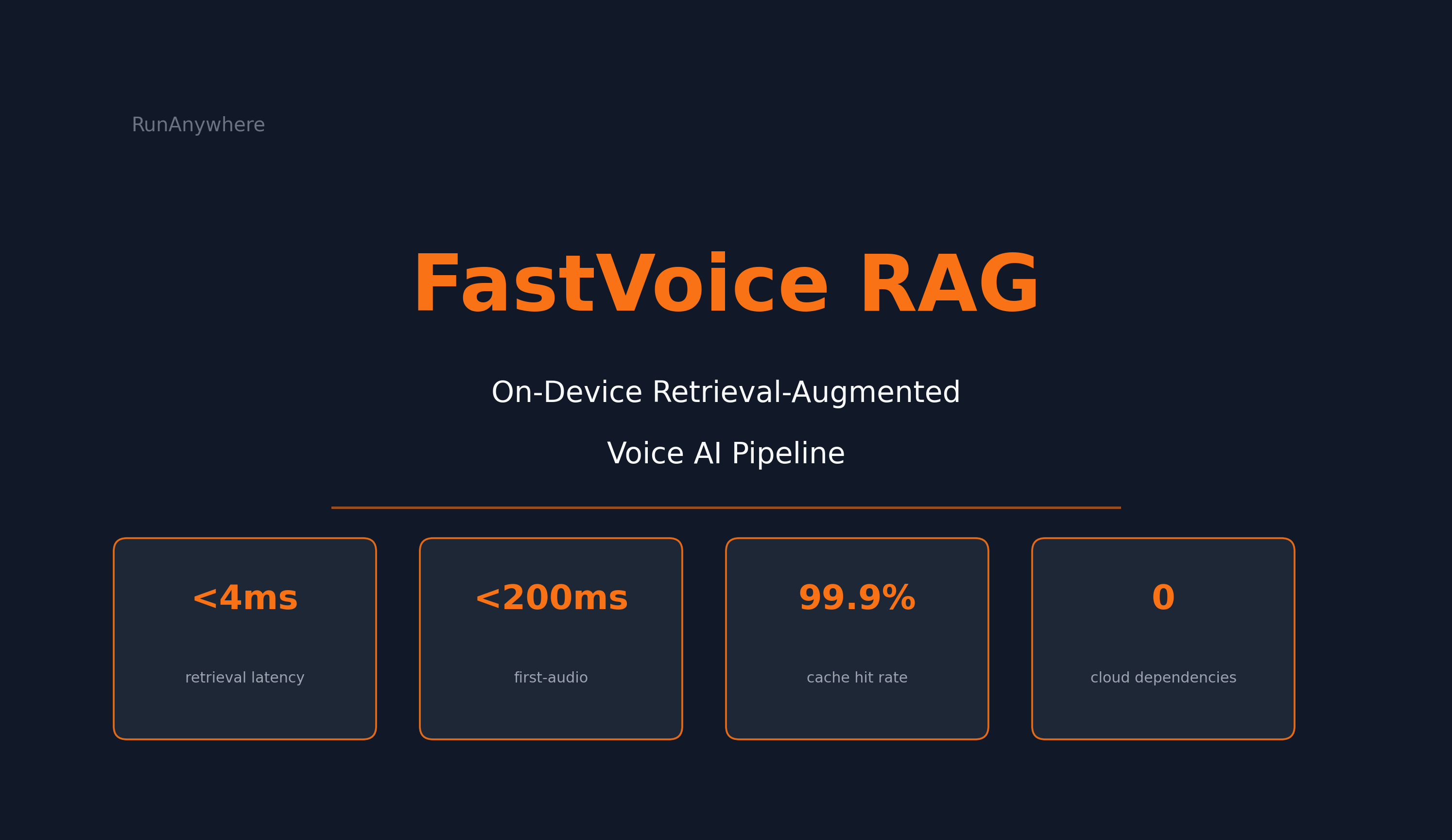 FastVoice RAG proves that hybrid retrieval-augmented generation can run in a real-time voice pipeline — entirely on-device — with first-audio latency under 200ms. The retrieval itself adds almost nothing. The LLM prefill cost is real, but word-level streaming flush absorbs it.